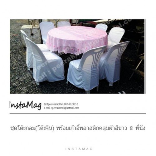 เก้าอี้พลาสติกสีขาว มีทั้งพร้อมผ้าคลุมผ้าสีขาวและไม่คลุมผ้า รวมทั้งแบบผูกโบว์ทอง ซึ่งเหมาะสมกับงาน จัดที่นั่งสำหรับประชุม งานต้อนรับ