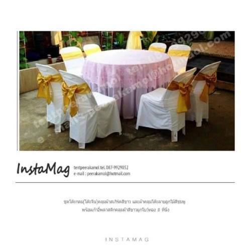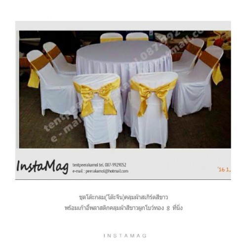 ผ้า รวมทั้งแบบผูกโบว์ทอง ซึ่งเหมาะสมกับงาน จัดที่นั่งสำหรับประชุม งานต้อนรับ